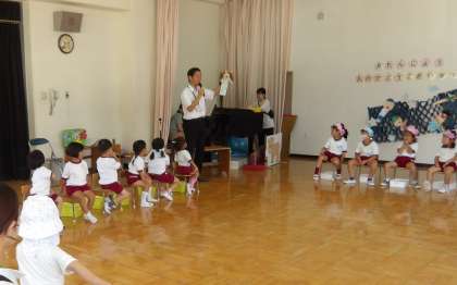 最後は先生たちみんなで、「たなばたものがたり」のお話の劇遊びのプレゼントです。織姫様と彦星様が出会えると、子どもたちも喜ぶ姿が見られました♪
