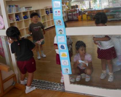 掃除をしながら、「1学期、いっぱい遊んで楽しかったね」と1学期を振り返ったり、「また2学期、綺麗なお部屋で遊ぶの楽しみやね」と2学期を楽しみに思う気持ちが膨らんだりしていました。