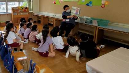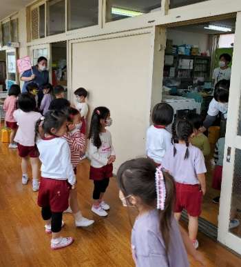 今日は、幼稚園の中を探検ごっこしました。帰りには、先生の絵本を夢中になって見ていた子どもたちでした。