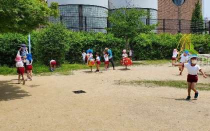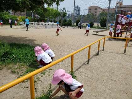 そら組もさくら組も楽しみにしていた、園外散歩。身近な公園だけれど、幼稚園の友達みんなで遊ぶのは、また格別だったようで、『また、行こな』と満足げな子どもたちでした。
