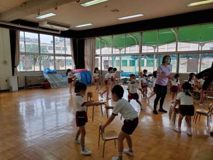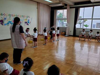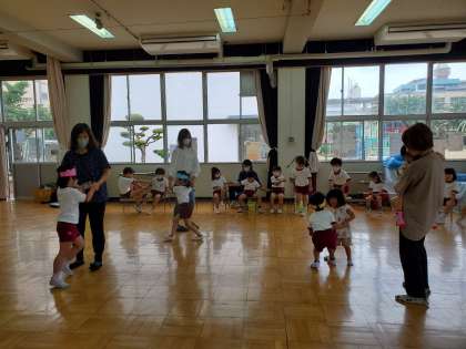 6月生まれのお友達、おめでとうございます。プレゼント渡しでは、誕生児も渡す側の子どもたちも、ドキドキ、ワクワクの瞬間です。おうちの方とふれあい遊びも楽しかったですね。