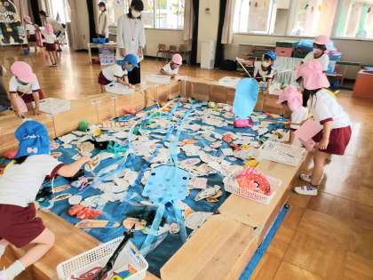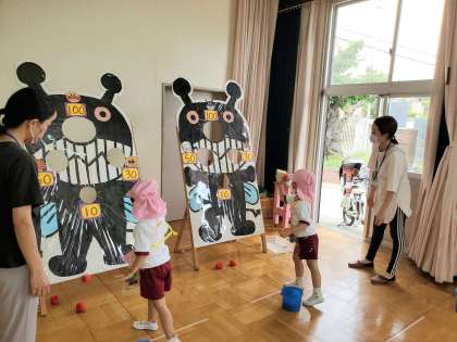 13日(水) PTAこどもなつまつり 公開日 2022/07/13 更新日 2022/07/13 お知らせ 『さかなつり』では、しっかり、お目当ての魚を見つけてねらって遊んでいました。 『まとあて』は、玉を投げる位置がだんだん近づくのが、かわいらしかったです。 いいね(0)