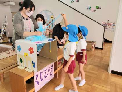 13日(水) PTA子どもなつまつり 公開日 2022/07/13 更新日 2022/07/13 お知らせ 『くじびき』は、手作りの千本引きに挑戦しました。 『ボーリング』のピンの絵は、そら組の子どもたちがかきました。 いいね(0)