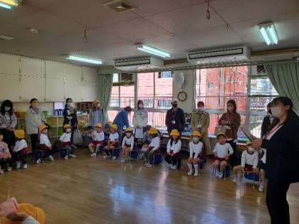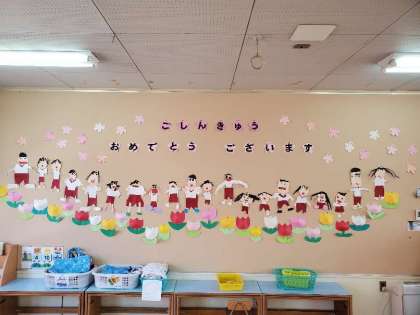 そらぐみのおともだち、ごしんきゅうおめでとうございます。きょうから、ドキドキワクワクのそらぐみさんですね。そらぐみでは、どんなことをしてあそびたいですか。どんなことができるようになりたいですか。これから、まいにち、たくさんたくさん、たのしいことがまっています。みんなげんきに、なかよくすごしましょう。