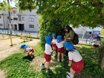 5歳児そら組は、午後から神路公園に園外散歩に出かけました。出発前に先生と確認した交通ルールをしっかり守って歩いていました。公園内では、シロツメクサやタンポポ探しをしたり、固定遊具に挑戦したり、おにごっこをしたりして遊びました。次は、さくら組のお友達も一緒に出かけましょうね。