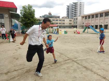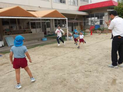 よーい どん! 公開日 2025/09/12 更新日 2025/09/12 幼稚園日記 9月11日(木) そら組の子どもたちが好きな遊びの中で、トラックを走って遊んでいました! 友達や担任の先生と走ったり、休み時間に園庭に遊びに来ていた東中本小学校のお姉さんと走ったり、園長先生と勝負をしたりし、「もっと速く走りたい!」「さっきより速く走れた!」と何周も何周も繰り返し走り、汗だくになりながら、力いっぱい走る楽しさや心地よさを感じていました。 いいね(0)