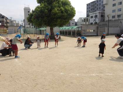 そら組さんが小さいお友達一人一人に、タッチしに行ってくれたり、「また来てね!」と言いながら見送ってくれたりしていたので、小さいお友達は名残惜しそうに帰って行かれました。
