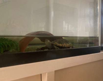 幼稚園のカメも、だんだん寒くなってきて動きがゆっくりになり、首を引っ込めている時間が多くなってきましたよ。