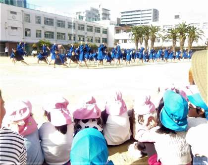 併設している東中本小学校の5年生の演技発表を、みんなで観に行かせてもらいました。