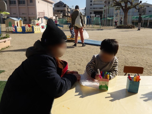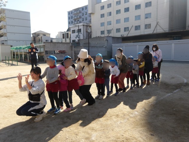 未就園のお友達が幼稚園に遊びに来てくれ、寒い日でしたが、遊んでいるとお日様がぽかぽかと気持ちよく、砂場やトランポリンで遊んだり、お絵かきを楽しんだ手づくり凧を持って走ったりして、元気いっぱい遊んでくれていました!