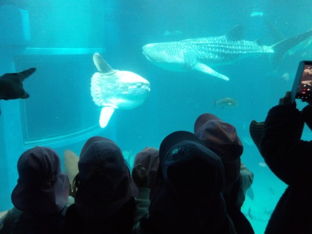 海遊館では、ジンベエザメやマンボウ、アシカやクラゲ、イカ、イワシなど、たくさんの生き物を見ることができ、子どもたちはそれぞれの生き物の色や大きさ、形、名前、動きなど、様々なことに興味をもちながら、じっくりと見る姿が見られました。