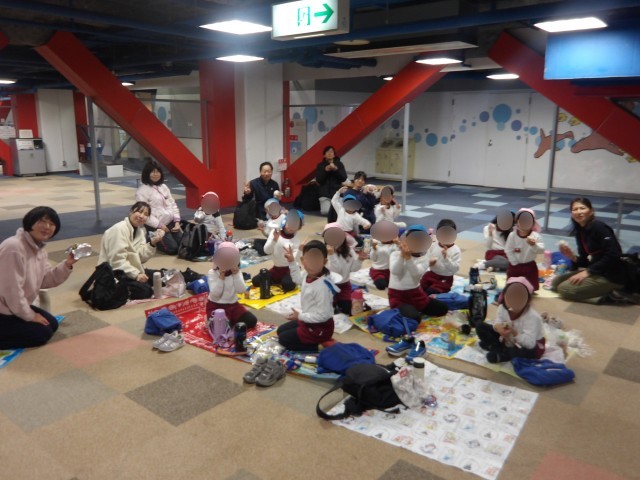 お昼は、ペアの友達と隣に座り、仲良くおにぎり弁当を食べたり、海遊館の生き物クイズをしておしゃべりをしたりしながら、楽しく過ごしました♪