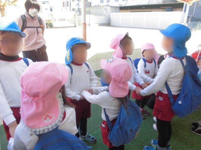 そら組さんのおかげで、無事、幼稚園まで帰ってくることができ、「一緒に行ってくれて、ありがとう!」「楽しかったー!」とお礼を伝え合う子どもたちの姿が、とても微笑ましかったです。