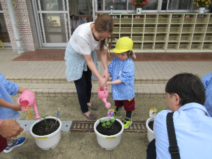毎週金曜日は、保護者の方との水やりDayになってます。