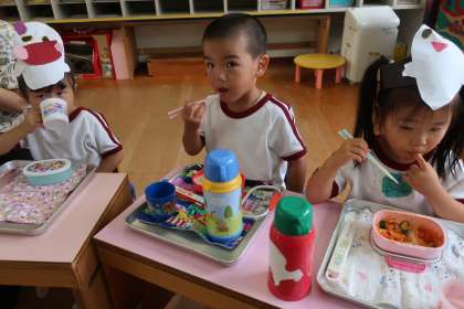 今日は1学期最終の野菜チャレンジデーでした。プールでたくさん体を動かしたので、「おなかすいた〜」ともりもり食べていましたよ。1学期の野菜チャレンジデーにご協力いただきありがとうございました。2学期以降も実施しますので、よろしくお願いいたします。