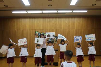 終業式では夏休みの話を聞いたり、歌を歌ったりしました。