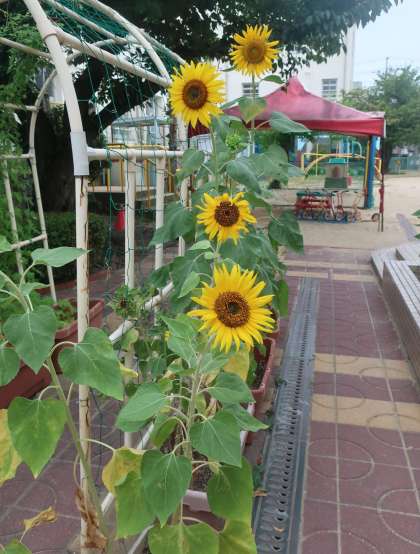 残暑お見舞い申しあげます。みなさんいかがお過ごしでしょうか?幼稚園のひまわりも元気に咲いています!
