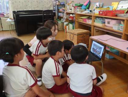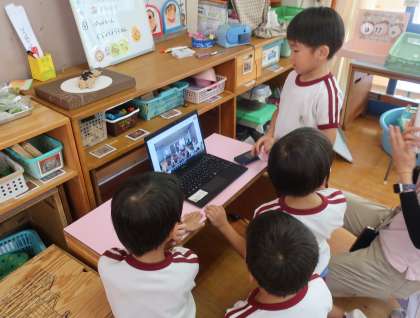 今日は、九条幼稚園からお礼のテレビ電話がかかってきました。
