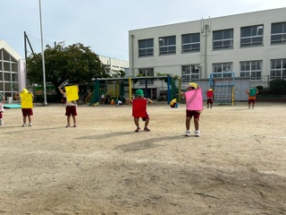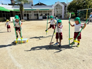 好きな遊びの時間に引き続き竹馬をし、「1番上にして竹馬のってみよ!」「竹馬で山のぼろう!」など自分なりの目標もって遊んでいますよ。11月のオープンデーも楽しみにしておいてください。