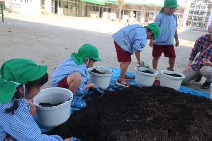先日チューリップの球根を植えました。チューリップは種ではなく球根から咲くことを知ったり、球根をどっち向きに植えるかを考えたりして植えました。