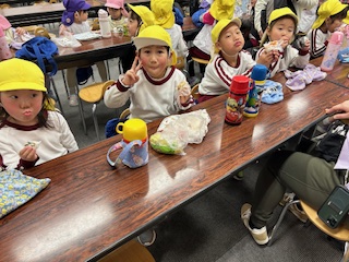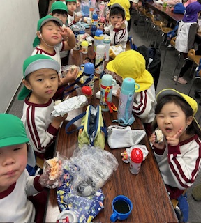 たくさん遊んだのでお腹がぺこぺこ! おにぎり食べています♪