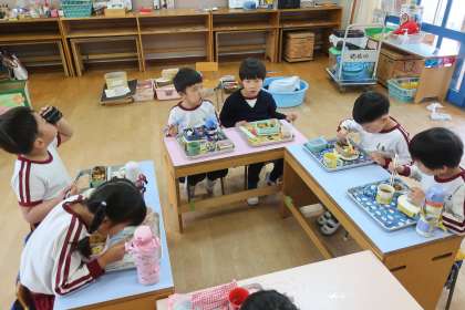 今日は今年度最後の野菜チャレンジデーでした。この1年間それぞれのペースで苦手なお野菜にチャレンジしました。友達に励まされ食べることができるようになったり、食べることが難しい場合は「残したい」ことを言葉にして伝えられたりできるようになりました。そんなみんなはきっと素敵なまつ組さん・小学生になれますね。よく頑張りました!おうちでもたくさん褒めてあげてくださいね。今日配付したおべんとうだよりもご覧ください。