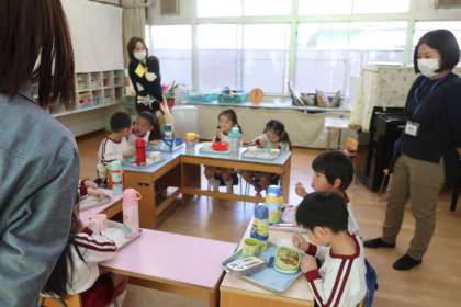 今日は、お弁当講習会を行いました。養護教諭からお弁当作りのポイントなどをお話させていただきました。そのあと、まつ組のお部屋に移動してお弁当の準備する様子から参観してもらいました。テキパキと準備をする様子に、おうちの方はびっくりしていました。まつ組の子どもたちも「どお?」と言わんばかりに意識している様子でかわいかったです。きく組のお弁当は来週21日から始まります。お弁当の時間が楽しい時間になるようにしていきたいと思います。お弁当作りよろしくお願いします。