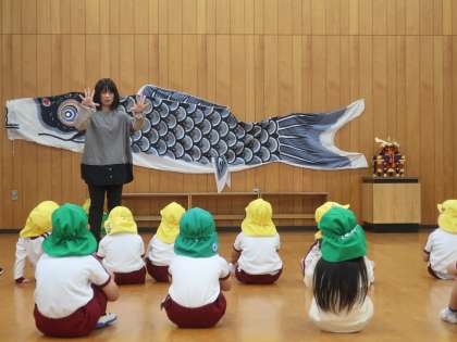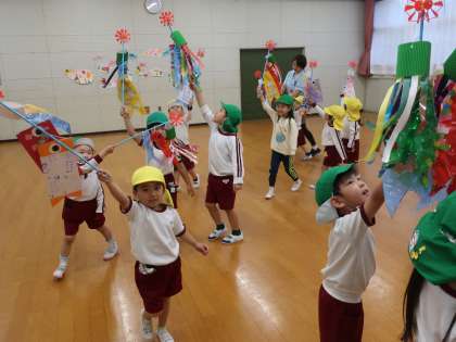 こどもの日の集い♪ 公開日 2025/05/02 更新日 2025/05/02 園行事 今日はこどもの日の集いでした。今日までに各クラスで制作した鯉のぼりの見せ合いをしたり泳がせたりしました。その後、体操をして元気いっぱい体を動かして遊びました。 いいね(0)
