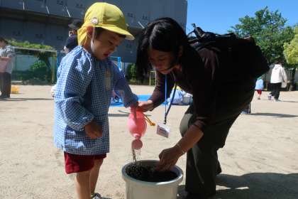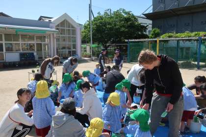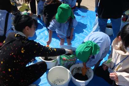 今日は朝からお家の人と一緒に夏野菜の苗を植えました。お家の人と相談して、どの苗にするかを決めて植えました!苦手な野菜にチャレンジするために、苗を選んだお友達もいました。お弁当を食べた後、きく組の子どもたちは「もう大きくなってるんじゃない」と、生長を楽しみにしているようでした!毎週金曜日は、お家の人と水やりをする日になっています。ご予定おきください。