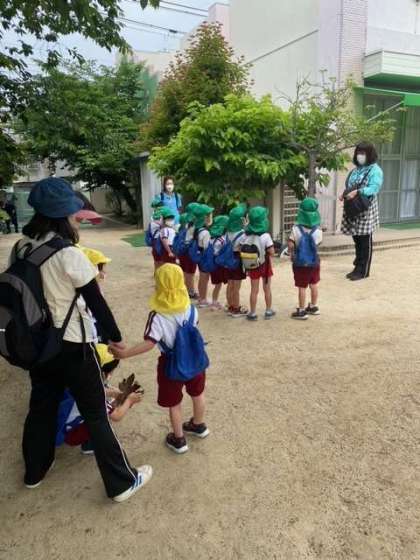 まつ組もきく組も上手に並んで桃谷公園まで歩くことができました。