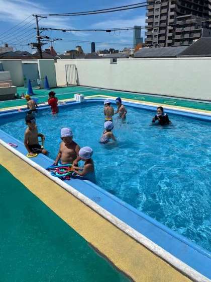 また、プールサイドでは、隣の友達と間隔をあけ、座るようにする約束もしっかりと守れていましたよ。