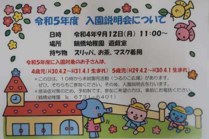 説明会は、感染症対策のため、予約制です。参加をご希望される方は、園にお電話ください。