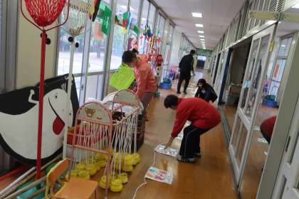 運動会を開催するにあたり、今日は職員でいろいろな準備をしました。とは言っても、雨なので園庭の整備はできません。それでも、先生たちは今日できることを確認しながら準備に取り組みました。明日は、絶対晴れることを願って・・・☆