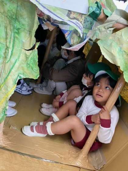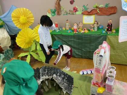 幼稚園の子どもたちは「こっち来て見て!」と小学生の手を引いたり、「私のこれ!」と自分の作品や友達と作った作品を嬉しそうに紹介したりしてました。