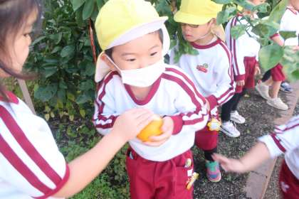 幼稚園のみかんを収穫しました♪