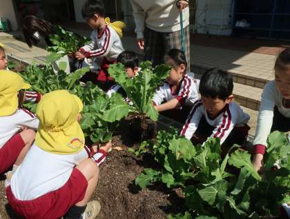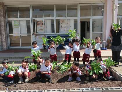 本日きく組も、ブロッコリーと大根を収穫しました。