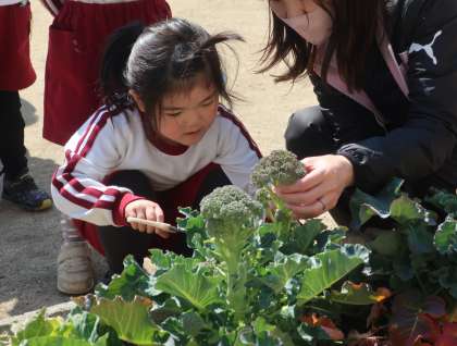 ブロッコリーは少しずつはさみで切り取ってもらいました。みんな真剣な顔で収穫していました。