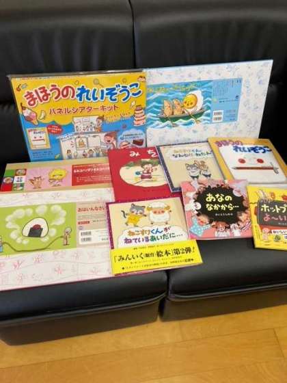 先日ワークショップに参加させてもらい、子どもたちの大好きな絵本作家のさいとうしのぶさんより、絵本や紙芝居が送られてきました。