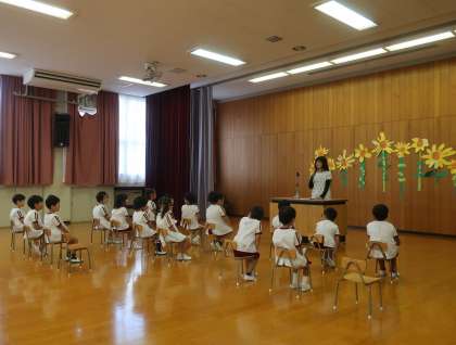 久しぶりの再会に少し照れている子ども、「早く幼稚園来たかったー」という子ども、様々でしたが、楽しい夏の思い出を話してくれました。