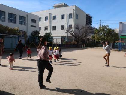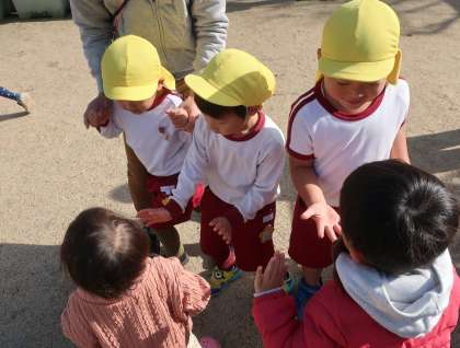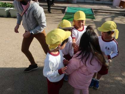 しゃがんで目線を合わせて、積極的に関わる姿がありました。