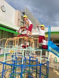今日は、晴れたので園庭に出ると1番に遊具に登り、楽しんで遊んでいました♪