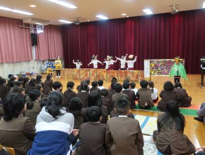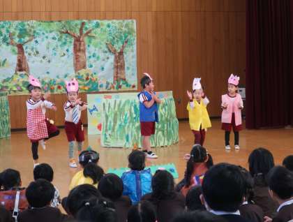 今日は鶴橋小学校のお兄さんお姉さんが来て、劇遊びを観てくれました。