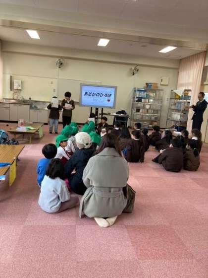 鶴橋小学校の1年生に「遊びの広場」に招待してもらい、まつぐみが参加しました。