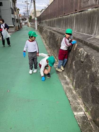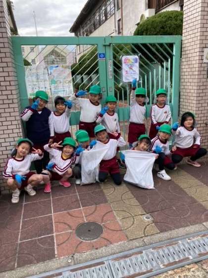 そこで、2年間お世話になった幼稚園の周辺の掃除をしました。