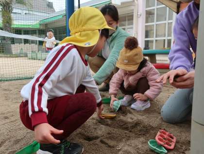 「いらっしゃ〜い」「こっちだよ!」とお出迎えし、一緒に遊びました。