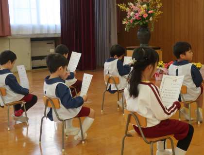 嬉しそうに進級証書をで見つめている子ども達は、入園当初よりお兄さんお姉さんの顔でした♪