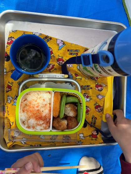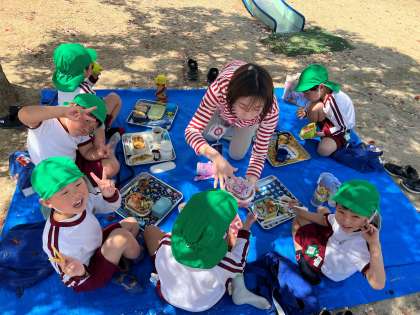 園庭でお弁当を食べたよ! 公開日 2024/04/12 更新日 2024/04/12 新規カテゴリ 園庭でお弁当を食べているまつぐみのお弁当を見ると、昨日収穫した『スナップエンドウ』と『きゃべつ』が入っていました!幼稚園で育てた旬のお野菜はおいしいね♪ いいね(0)