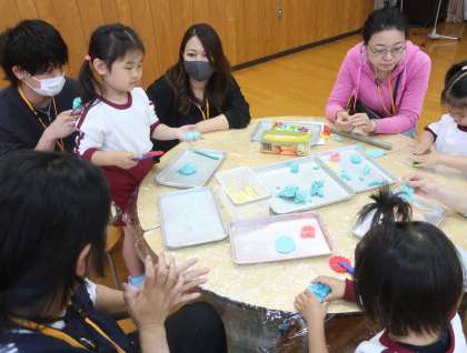 今日は今年度初めての保育参観でした。登園してからお家の人に、朝の身支度ができるようになったところを見てもらったり、歌を聴いてもらったりしました。その後、一緒に遊戯室で好きな遊びをしたり、体操やふれあい遊びをしたりしました。また、5月に保育参観を予定していますので、楽しみにしていてください♪