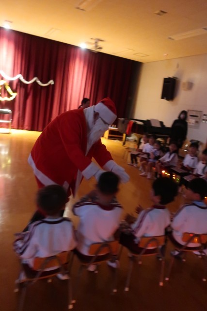 22日(月)にお楽しみ会をしました!以前、サンタクロースさんに「お楽しみ会の日に幼稚園に来てください」と、子どもたちは手紙を書きました。すると、本当にサンタさんが来てくれました★子どもたちは大喜び!サンタさんに質問をしたり、歌を聴いてもらったりして楽しいひとときを過ごしました!また、一人ずつプレゼントもいただきました♡また、来年も来てくれると嬉しいですね!