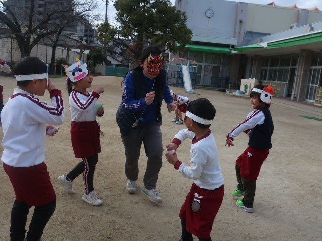 2月3日は節分の日。子どもたちは自分にどんな鬼がいるのか話しました。「おこりんぼ鬼」「泣き虫鬼」「イヤイヤ鬼」など鬼退治をし、福(幸せなこと)が来るように豆まきをしました!「鬼はそと!福はうち!」と日本の伝統行事を楽しみました♪